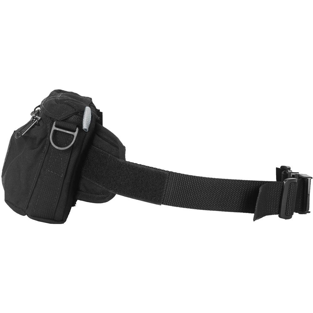 The pack can be used either in the belly position or fanny position, and it has an adjustable belt with a quick release buckle. The main compartment has a semi-rigid, reinforced interior to protect your gear. There are zippered pockets on the outside to keep all your accessories readily available.