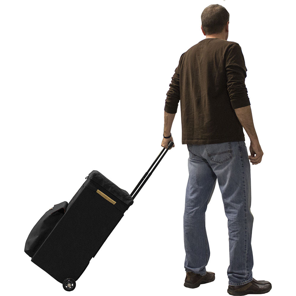 Your Light-Pack case features 1000-denier Cordura construction with a waterproof, anti-skid lining on the bottom. Built-in, off-road in-line skate wheels roll on ball bearings and have steel axles for confidence-inspiring durability. The wheels are also removable for those times when space is at a premium, such as airline travel. Roll the case over flat ground with the retractable handle and wheels.