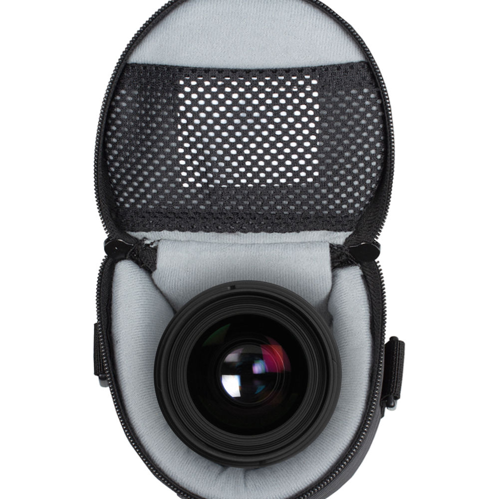 Store, transport, and protect your Sigma 35mm lens in this black Porta Brace Lens Cup with Strap. The cup features a 400D nylon exterior, a foam-padded frame reinforced by a thin layer of plastic, and a YKK zipper closure.