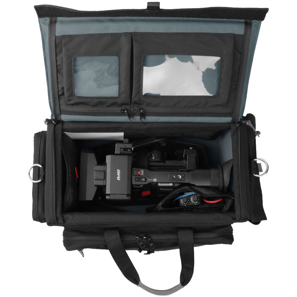 Safely store and transport your Panasonic HC-X2 or HC-X20 camcorder with this Rigid-Frame Case for Panasonic HC-X20 & HC-X2 Camcorders from PortaBrace. Made with durable 1000-denier Cordura, the case features a nonskid, easy-clean rubber bottom, padded accessory pouch, white balance card, camera tie-down strap, camera stabilizer cradle, carabiner/flashlight combo, red pillow, and a comfortable suede shoulder pad.