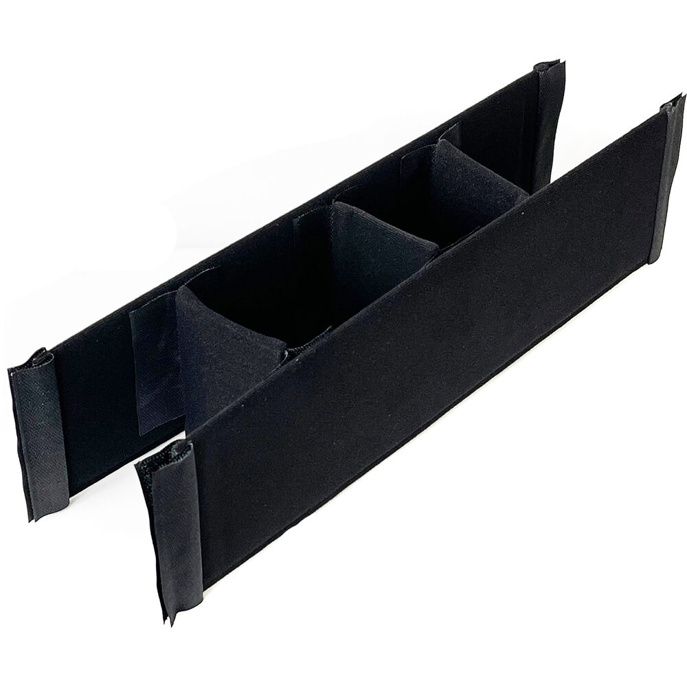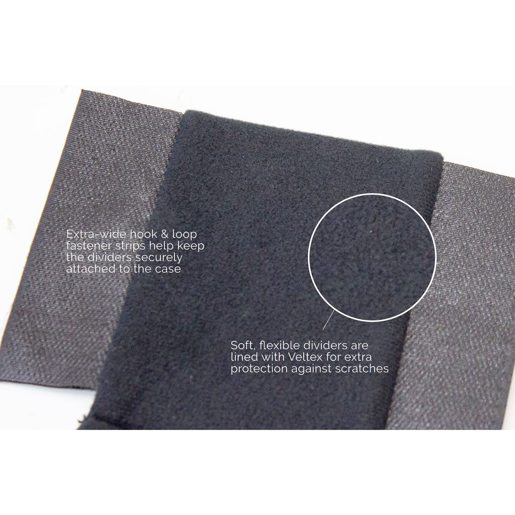 Customize your camera or audio component storage using the Set of Dividers from PortaBrace. Compatible with most PortaBrace cases or any case with a hook-and-loop lining, this large set consists of two 16.5 x 5" padded dividers, three 5 x 3" flexible, padded dividers, and two hook-and-loop attachment tips.