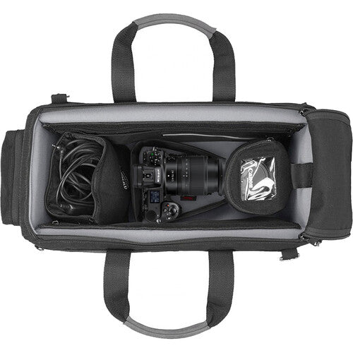 This Soft-Sided Video/DSLR Camera Edition Cargo Case from Porta Brace is an ideal general-purpose way to carry your essential photo and video gear and optimized to hold a kit measuring up to 16.5". It has a padded main compartment and two side pockets to protect what's inside as well as a suite of included accessories to provide additional protection and organization for your sensitive and delicate gear. Its exterior is resistant to wear and water and the bottom is skid and waterproof. You can wear the bag over your shoulder or carry it by hand with the soft suede-wrapped handles.