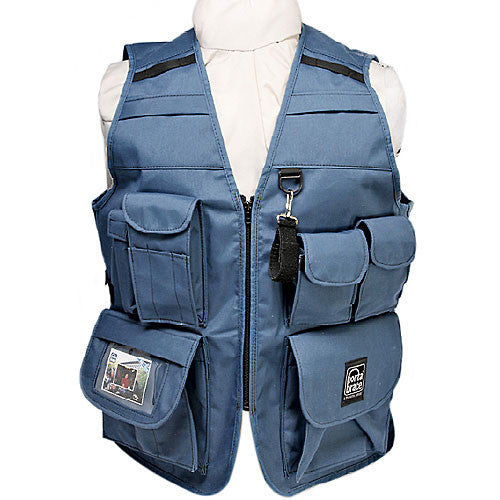 The extra extra large, blue Porta Brace Video Vest is made especially for ENG and EFP photographers and sound technicians. The Video Vest offers a comfortable, practical solution for audio/video technicians. It is made of a mid-weight Cordura fabric and is very durable, waterproof and has a soft inner layer.