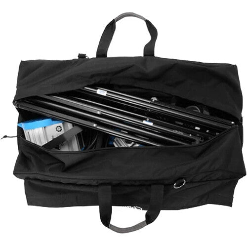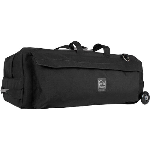 This large Wheeled Duffle Case with Gaffer Tape and Piggin String from PortaBrace is designed to transport general grip and electrical gear. Offering superior protection under unpredictable conditions, this durable wheeled bag is made from weather-resistant 1000D cordura fabric and water-resistant nylon. The duffle style case features smooth rolling, off-road, removable wheels, a padded main interior compartment, a padded large front pocket, and exterior pockets for accessories.