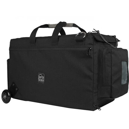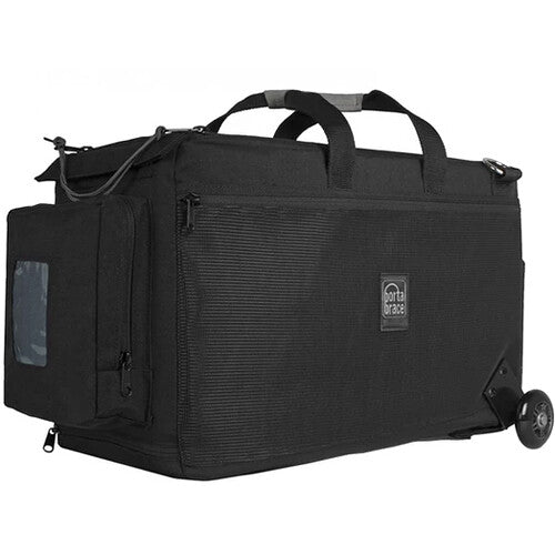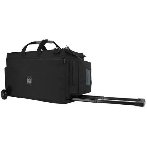 The black, 1000-Denier nylon Wheeled Semi-Rigid Case for ARRI ALEXA35 from PortaBrace offers lightweight yet durable dual-rigidity foam protection for your camera and accessories in a wheeled, easily towable form. This made-in-the USA case features a quick-zip top opening, a waterproof bottom panel, a retractable handle, and an off-road wheel system with steel axles, solid rubber wheels, and ball bearings.