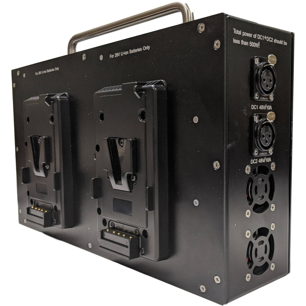 Simultaneously charge up to four 26V lithium-ion V-mount batteries with the dedicated 4A Quad Fast Charger with XLR Output from POWERANGE. It delivers 29.5V, 4A of power per channel, whether charging a single battery or multiple batteries. It also offers two 12 to 16.8V or 28V XLR outputs for powering cameras, lights, and other gear.