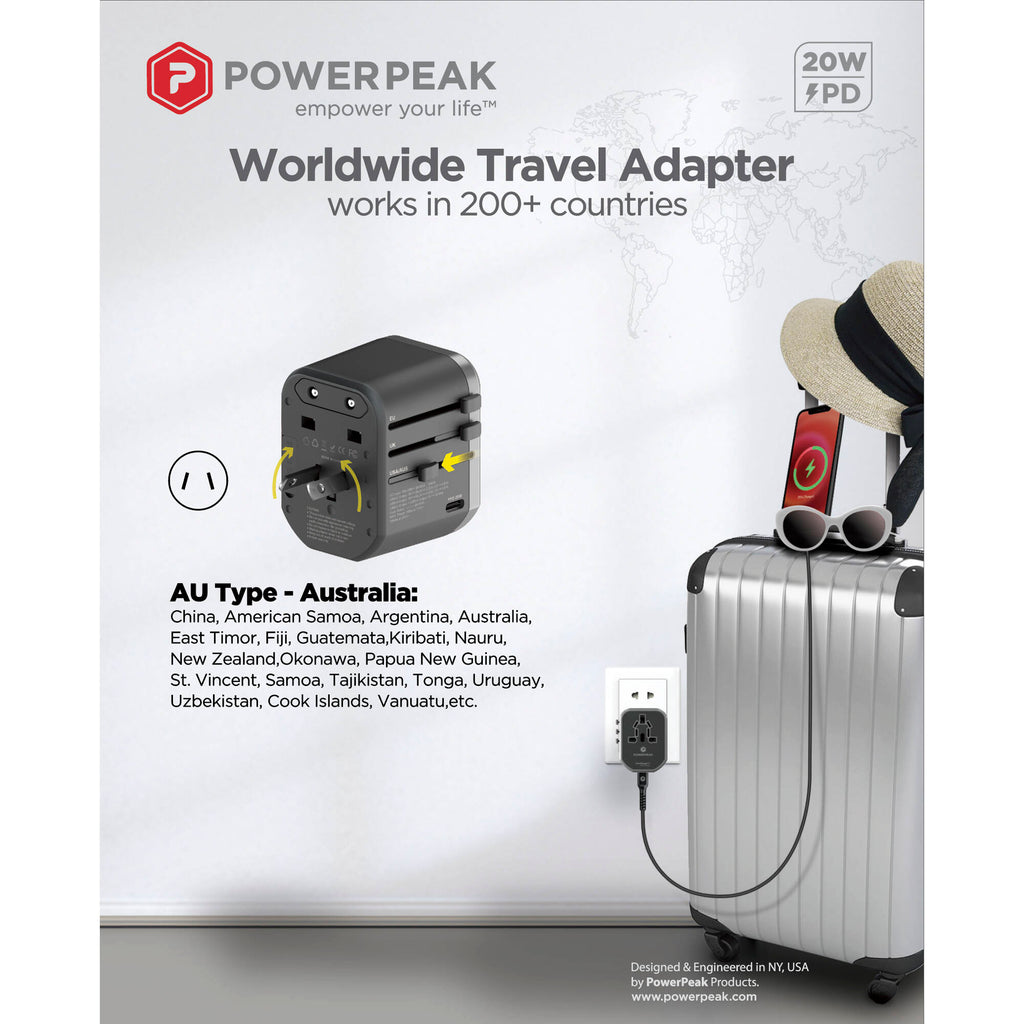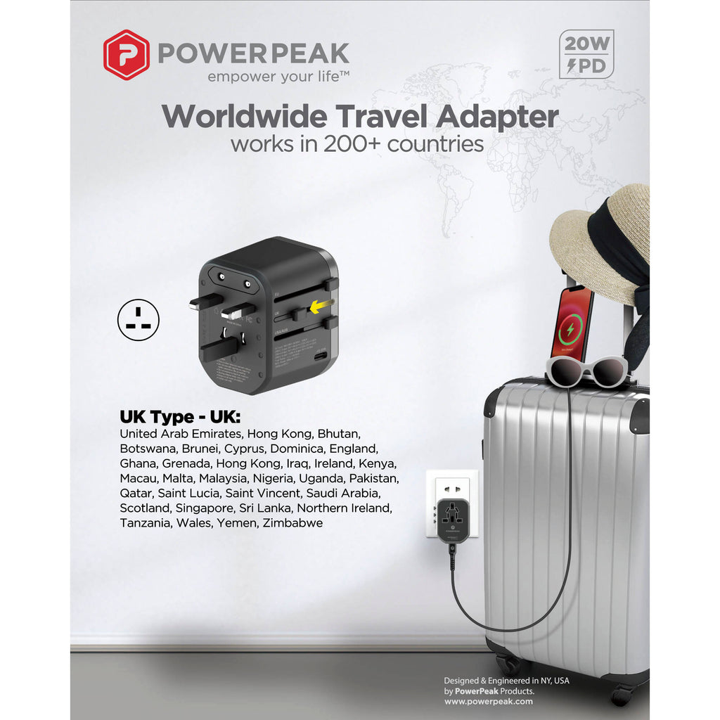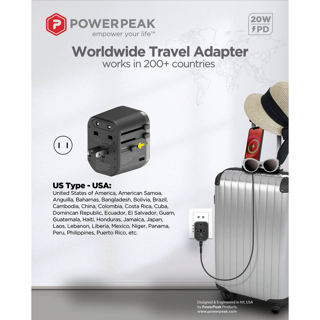 - PowerPeak Universal Power Adapter with USB-C/USB-A Ports