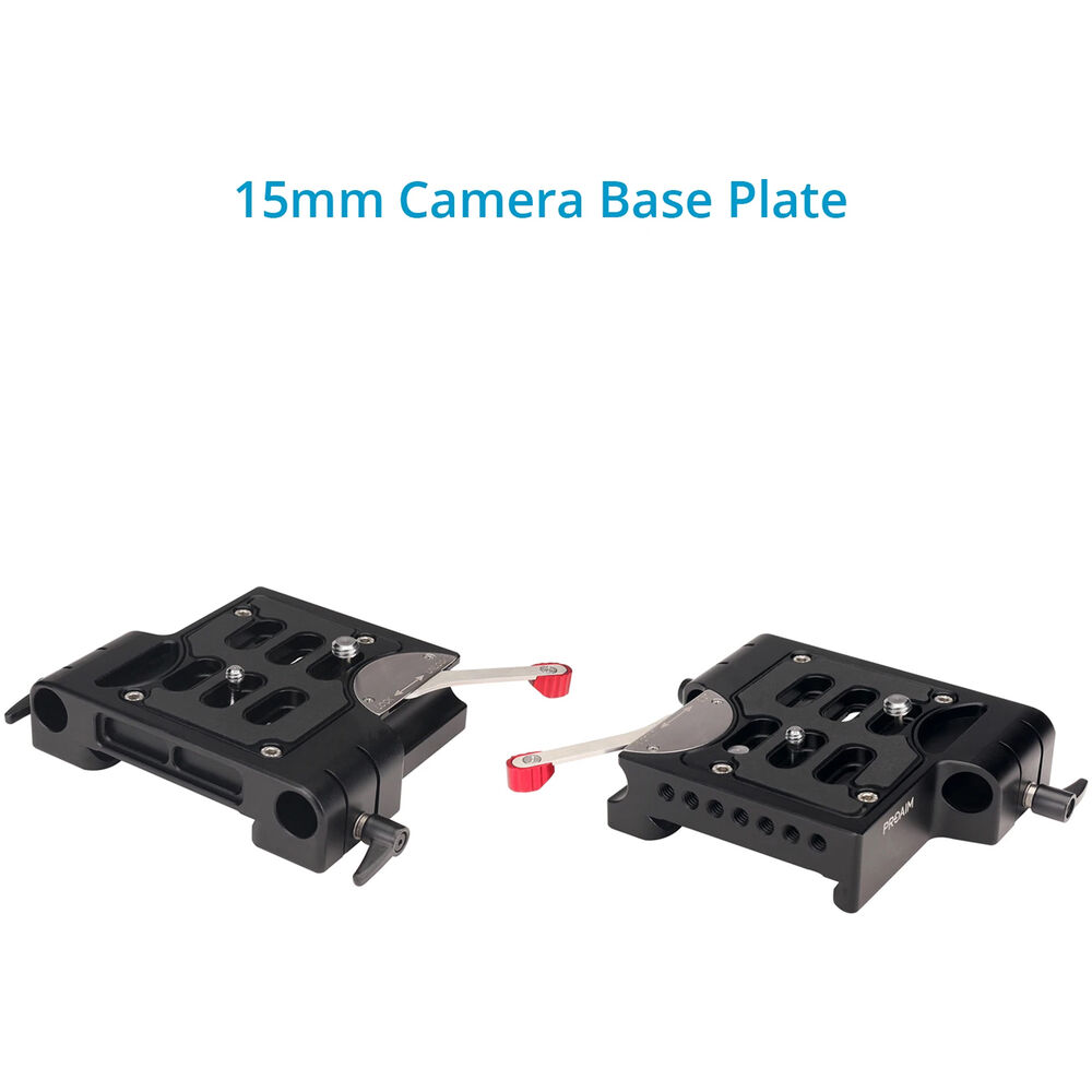 The 15mm Studio Bridge Plate with ARRI-Style Dovetail from Proaim offers 15mm studio-spaced rod support for camera accessories. This aluminum baseplate system consists of a bridge plate and a 10" ARRI-standard dovetail plate. The bridge plate features a center plate that can be flipped from ARRI standard height to RED standard camera height.