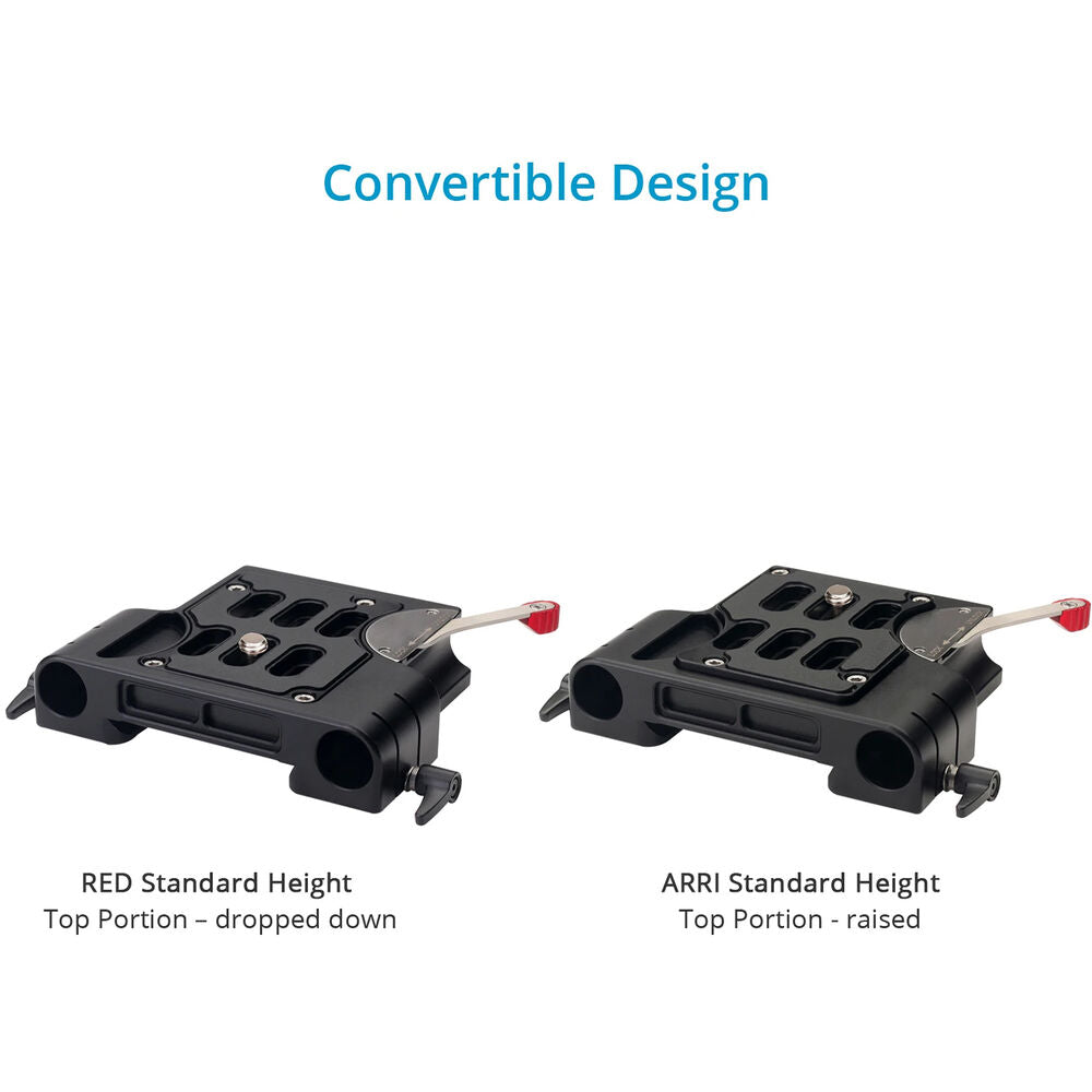 The bridge plate center can be reversed to offer 19mm rod support at the correct height for both ARRI and RED DIGITAL CINEMA cameras
