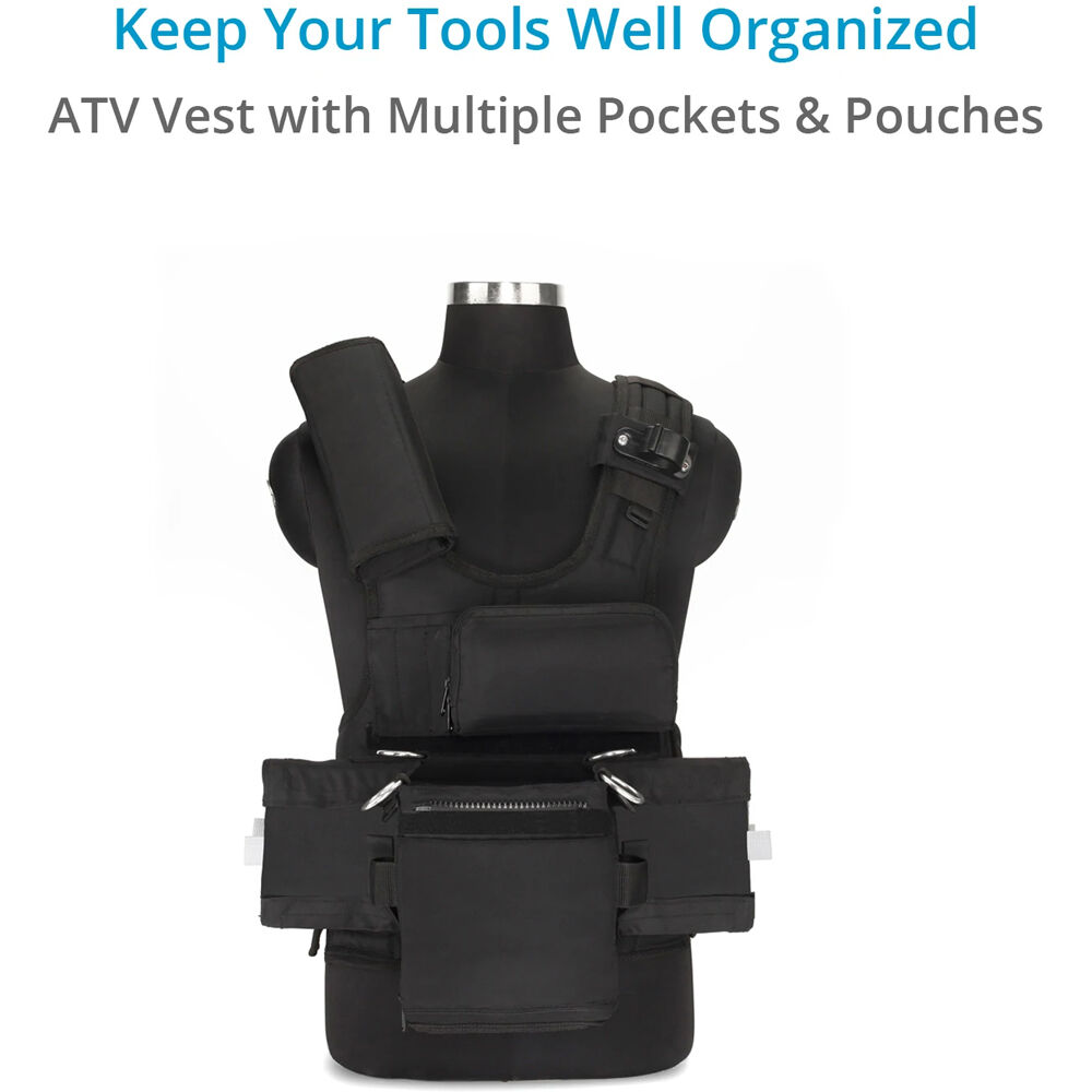 The ATV Audio Tactical Vest from Proaim is a military-style two-part audio tactical vest designed to safely hold and provide convenient access to a recorder and related accessories for sound recordists, mixers, and boom operators in ENG, television, video production, and field recording. The adjustable vest comes in front and back parts, making it easy to put on and customize, delivering comfortable support and even weight distribution while preserving mobility and equipment access.