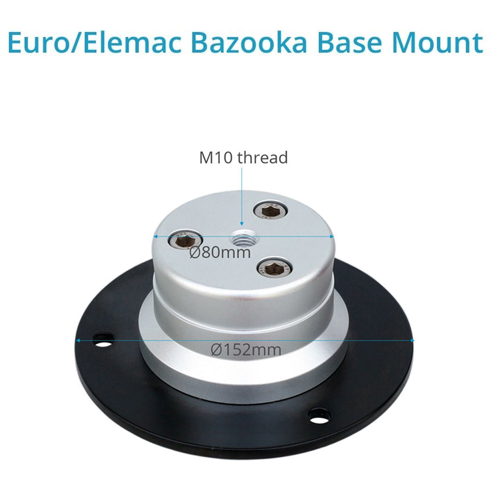 This Euro/Elemac Base Adapter Mount from Proai allows you to attach a Euro/Elemac fitting onto a platform for mounting a variety of camera support accessories. It supports up to 440 pounds, dependent on your platform and mounting method, and the base sits flush on a flat surface with three through-holes, allowing for attachment to the platform. The Elemac fitting has a standard M10 threaded hole for locking your support to the fitting. The Elemac fitting is compatible with cinema-style bazooka supports. Three included mounting bolts allow you to attach the base adapter to support platforms, such as a doorway dolly.