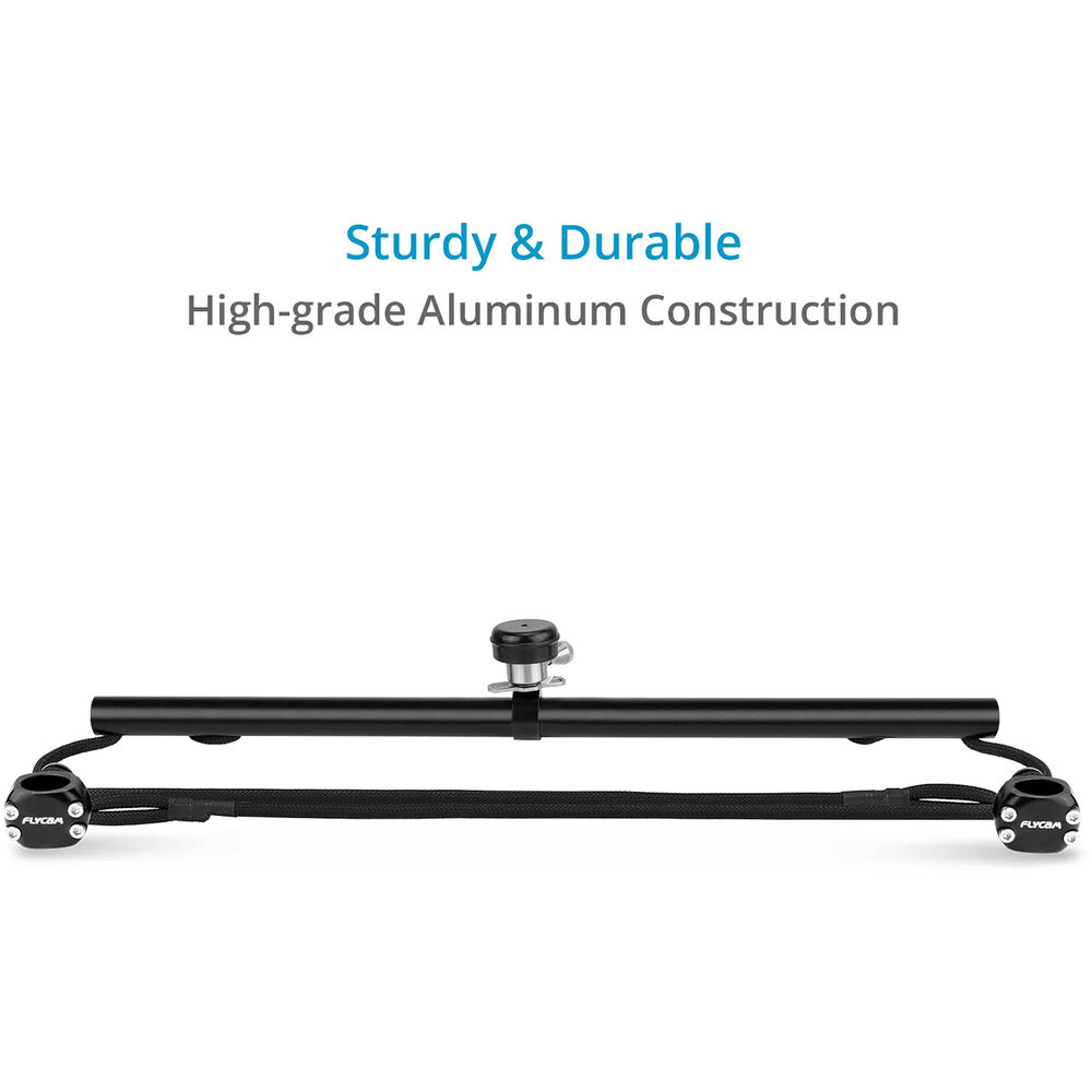 Capture those creative angles with the Proaim Flycam Flowline Camera Gimbal Tilt Control Kit for Flowline Rigs & Star Ring, exclusively designed for all Flycam Flowline Series to offer steady gimbal tilt with immense ease. The crossbar is affixed to the top of your Flowline Rig with the help of a quick release camera hook, and it easily mounts your camera gimbal via a Proaim Star Ring or any Gimbal ring with an outer diameter of 30mm, supported by ropes and spindles. The kit combines a crossbar, ropes, spindles, and a quick release camera hook, delivering you easy, steady tilting gimbal shots. The 26.8" crossbar evenly distributes the balance across and lets you tilt your entire flowline rig down to 90° on either side with smooth, even movement.
