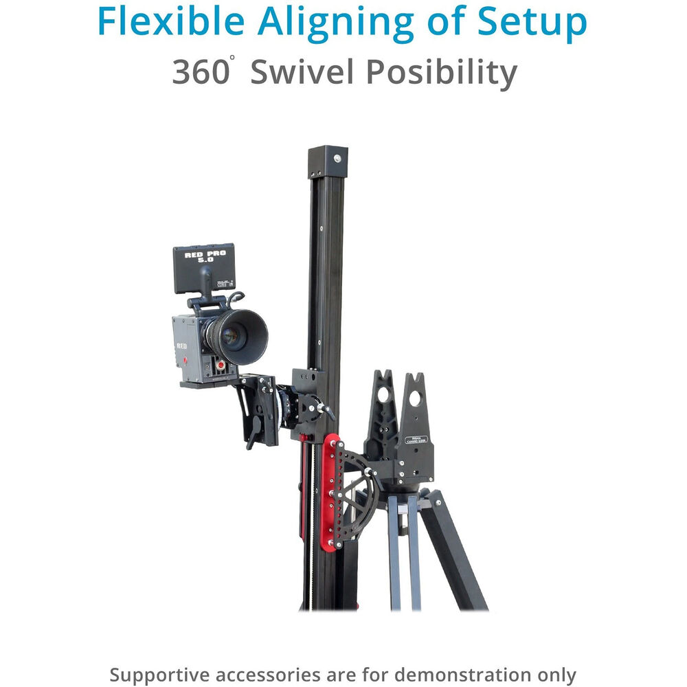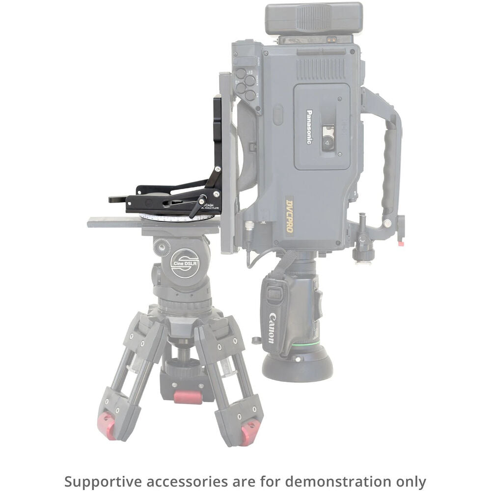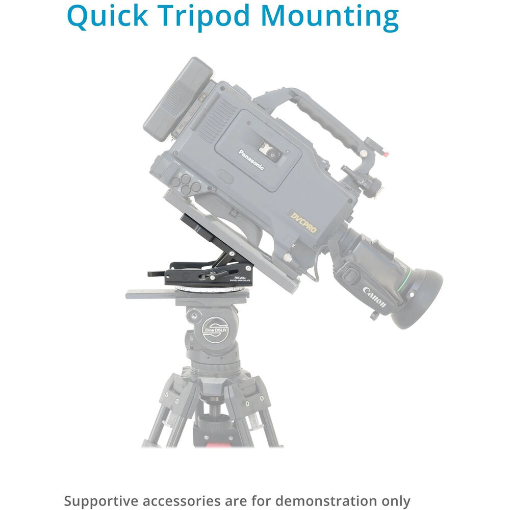 The Proaim Locking Swivel Pan/Tilt Wedge Plate supports cameras and rigs weighing up to 55.11 pounds and has seven locking tilt positions from 0 to 90°. The plate tilts forward and features two spring-loaded locking levers to secure your camera or rig in place. It also features 360° of pan, and a locking lever enables the setting and locking of the pan. A 360° indexed marking ring allows you to repeat pan positions precisely.