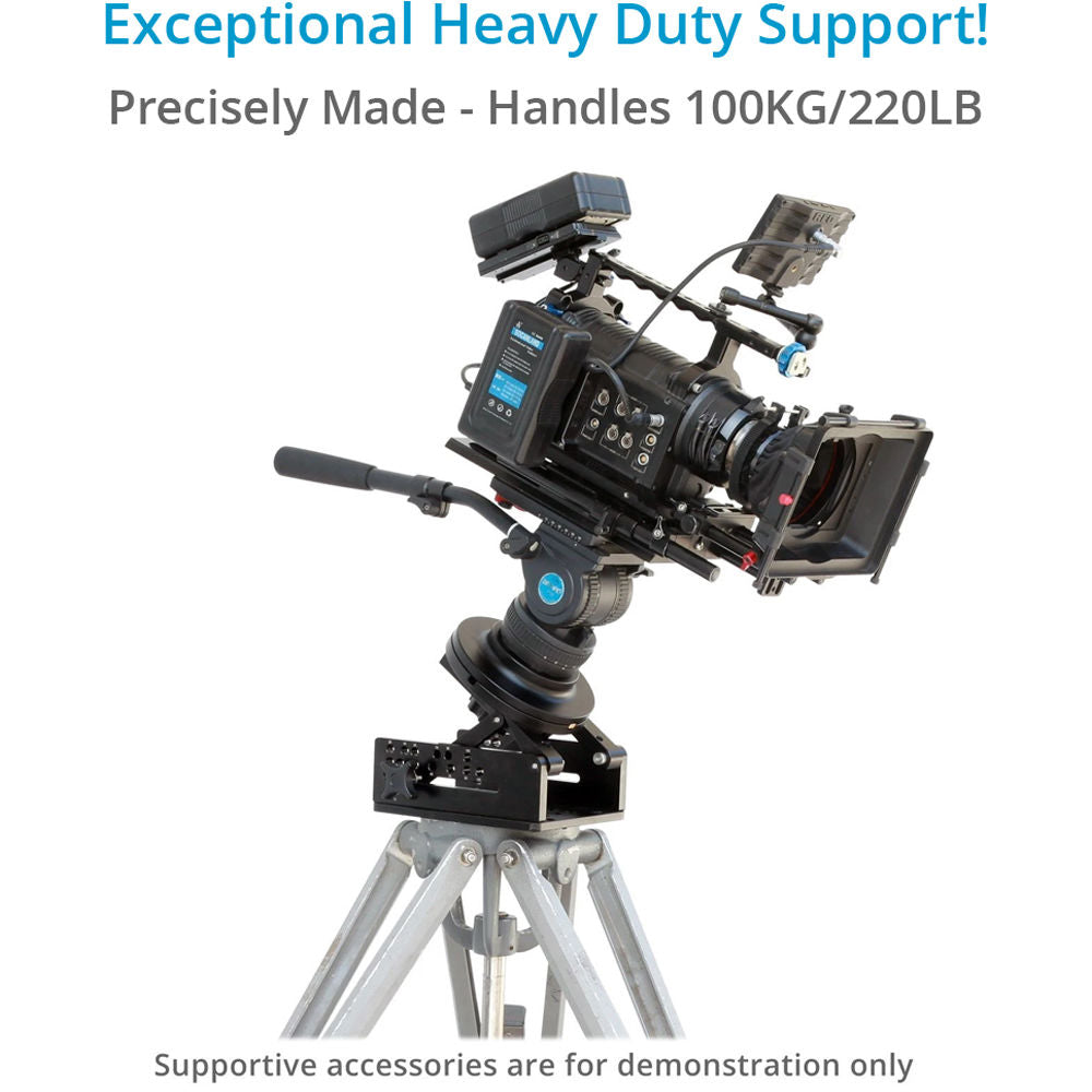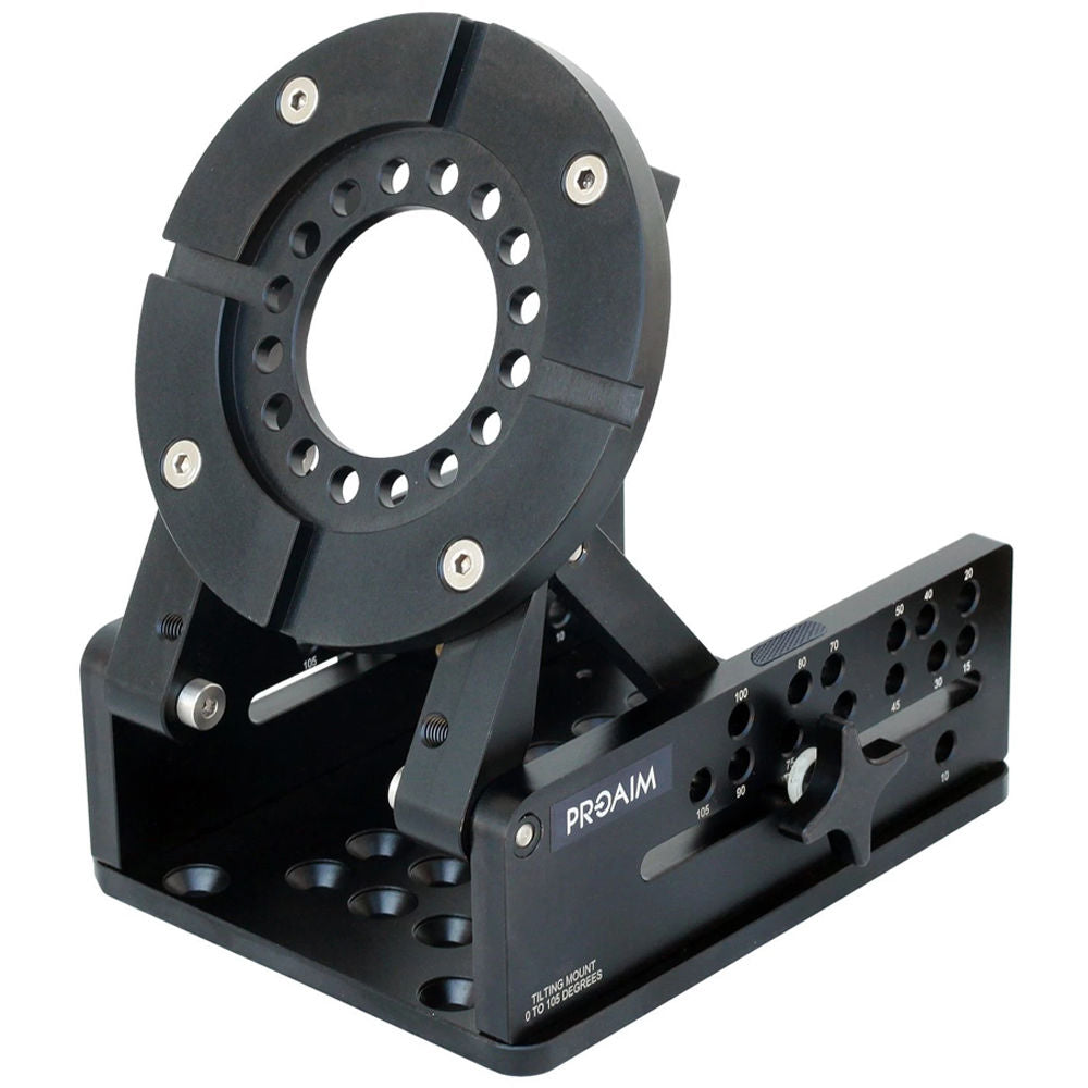 The Mitchell-Base Tilt Wedge from Proaim supports cameras and rigs weighing up to 220 pounds and features a tilt range of 0 to 105°. Use this plate to create Dutch angle, underslung, or low-angle shots with your cine or pro-video rig. You can also use the Tilt Wedge to keep your camera level when using a vertically angled slider.