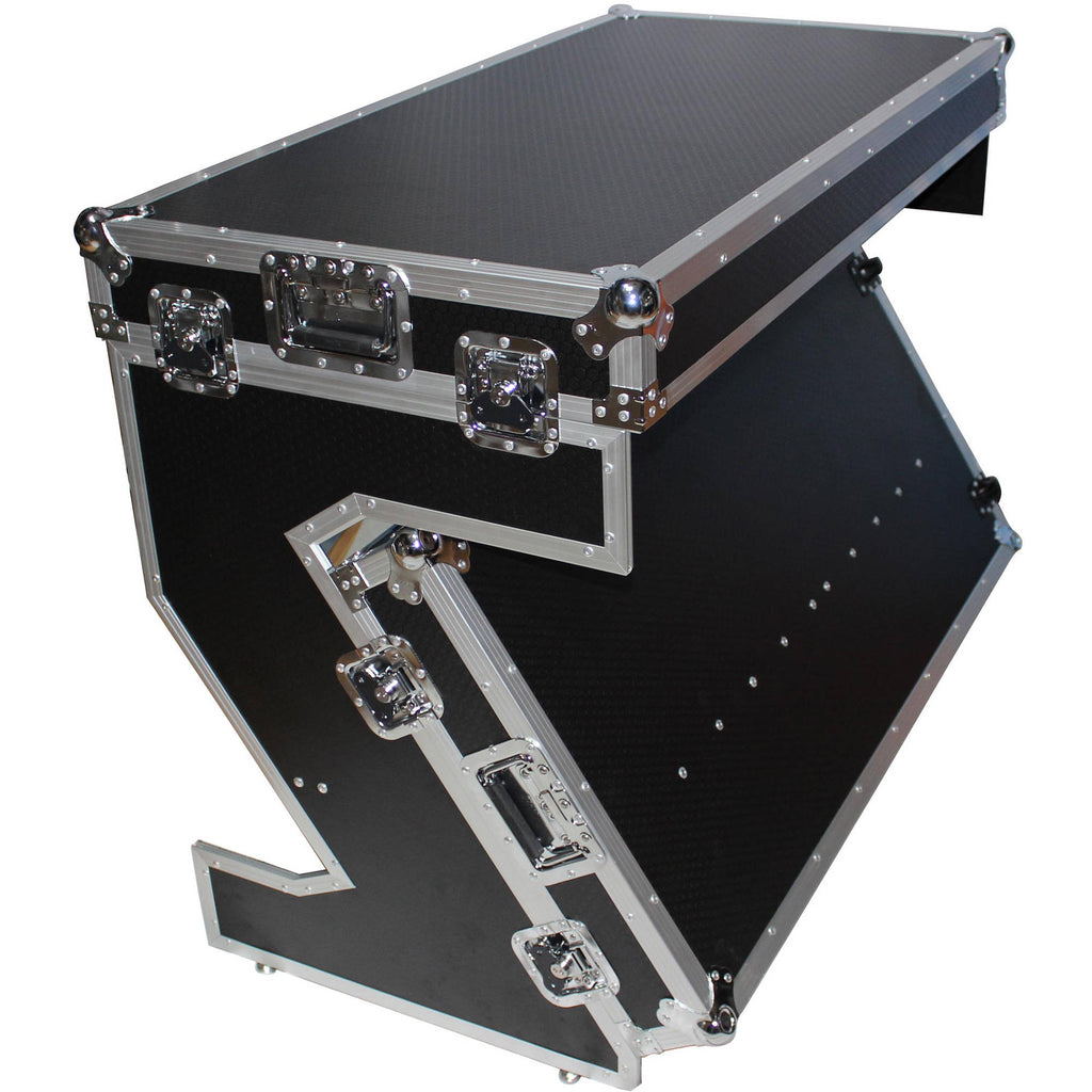 - ProX DJ Z-Table MK2 Portable Z-Style DJ Table Flight Case with Handles & Wheels (Silver on Black)