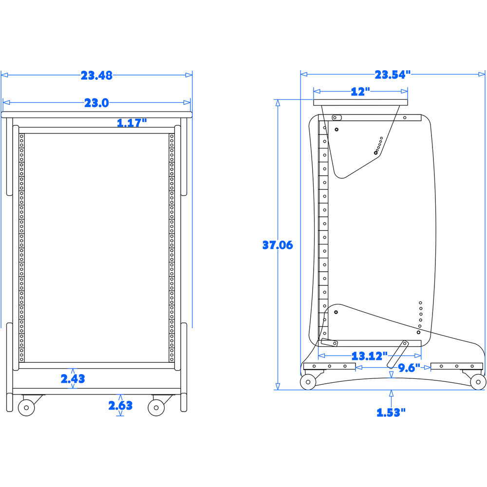 Rack up your audio components with the ProRak Multi-Angle Rack with Wheels (16 RU) from RAB Audio. This wheeled audio rack has a 6-stop adjustable-angle top shelf for any uniquely shaped piece of equipment that's part of your setup. Wheel the cabinet from station to station with the four casters. The impact-resistant molded edge bumper on the medium-density fiberboard protects your tech from bumps and scuffs. Set up the rack unit quickly with the included assembly tool.