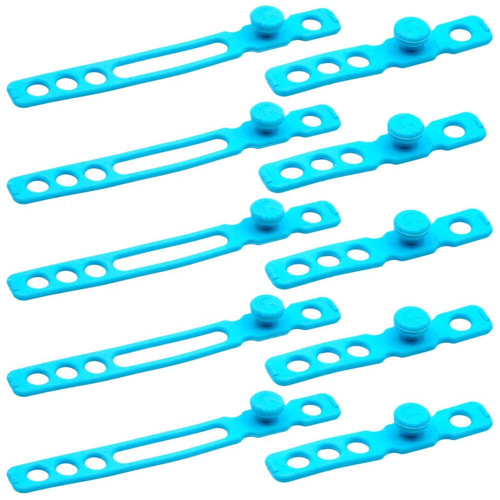 Replace noisy or scratchy hook-and-loop straps with this 10-pack of light blue Radius RAD Cable Straps. Made from high quality, latex-free TPE silicone-based polymer, these cable straps feature a cable-stay side which locks the strap in place so the cable doesn't fall off, making it well suited to a variety of applications. The package contains five straps that are 2.4" long and five straps that are 3.9" long.