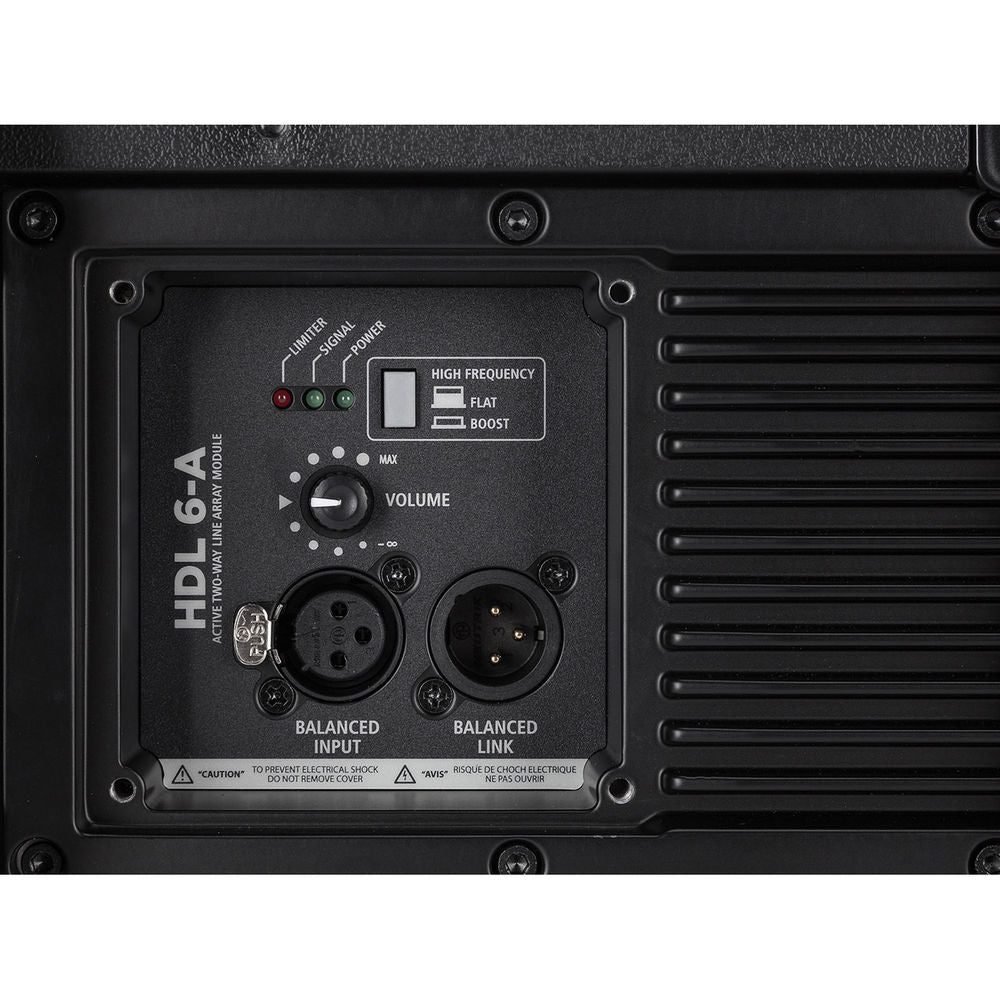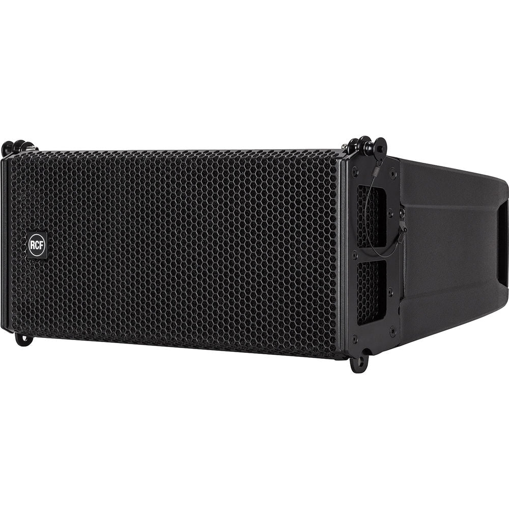 Powered by a 1400W digital amplifier, the black 12" Active Flyable Subwoofer from RCF is designed to complement the HDL 6-A speaker system. It features a built-in digital stereo crossover (DSP) with adjustable crossover frequency to connect the HDL 6-A line array module or a satellite. This compact, active sub enclosure is equipped with transparent-to-sound foam backing inside to protect transducers from dust. The heavy-duty front grille is powder coated.