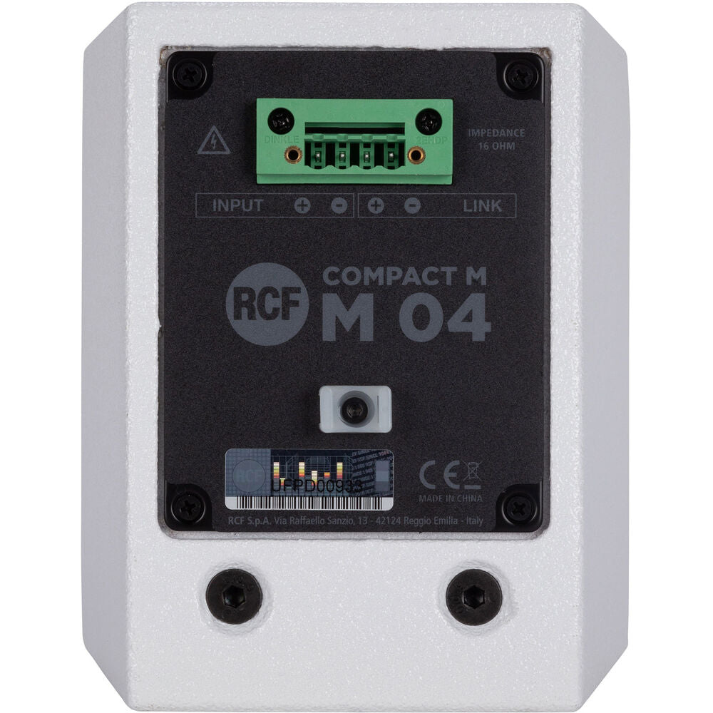 Give your customers, patrons, and employees the sound they deserve with the white RCF COMPACT M 04, an ultracompact passive speaker suitable for a wide range of installed applications. With its compact dimensions, frequency range, and constant directivity angle of 120 x 120°, this speaker provides a professional, hi-fi sound in a customer-facing environment.