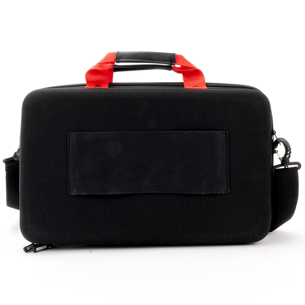 The Premium Compact Controller Bag also includes an integrated laptop/tablet compartment for devices up to 13". The comfortable handle (made of vegan leather and red nylon) as well as the padded shoulder strap make transport a breeze. There is also a sling for safe attachment to trolleys.
