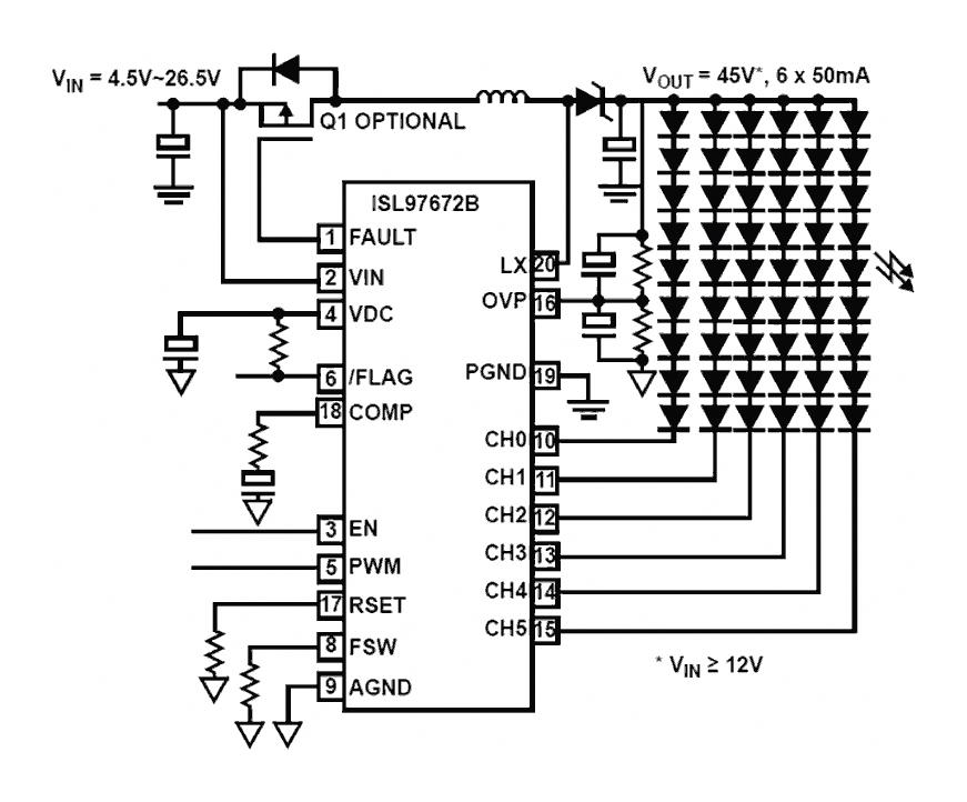 Renesas ISL97672BIRZ ISL97672BIRZ LED Driver Boost 1.5 MHz QFN-20 SMD 4.5 V to 26.5 New