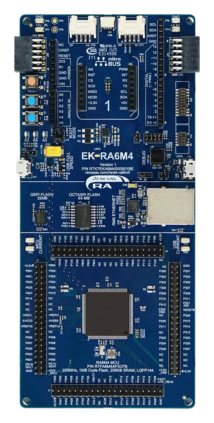 - R7FA6M4AF3CFB MCU, 200MHz Arm Cortex®-M33 core, 1MB code flash, 256KB SRAM