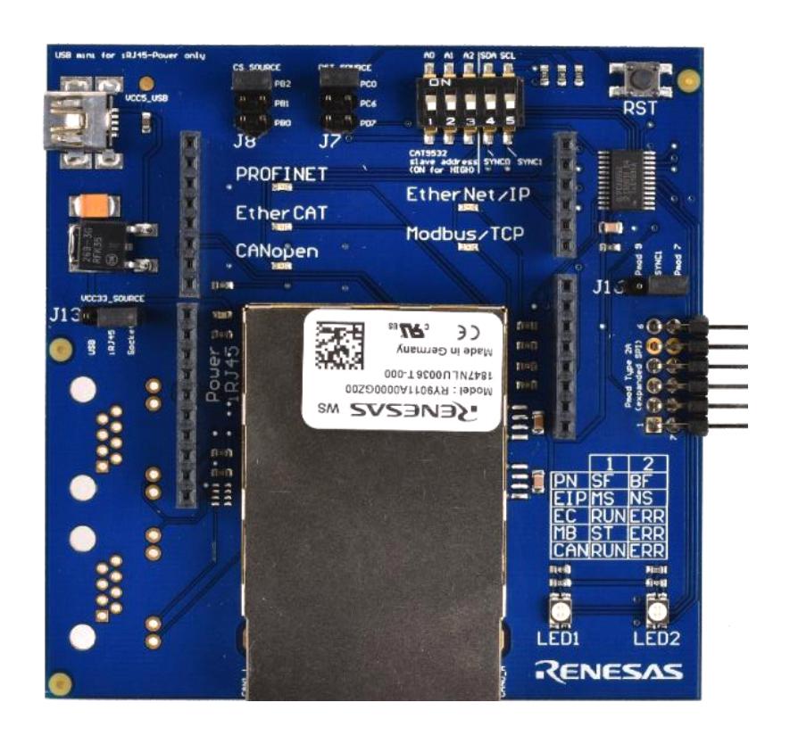 - Board including R-IN32M3 industrial Ethernet module
