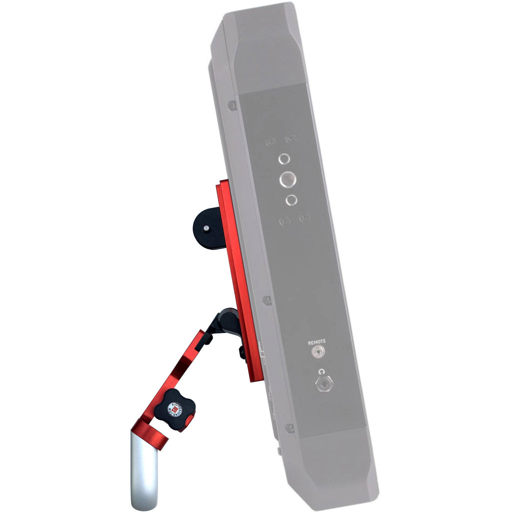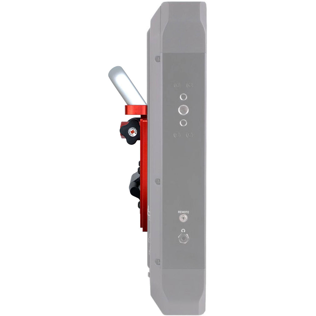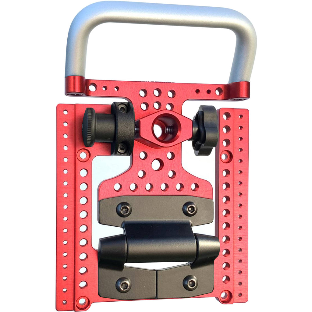 Mount your production monitor onto a stand, wall, or other mount quickly and easily with the red Para Mount VESA Professional Production Monitor Mount from Rigidesigns. The durable mount provides a mounting plate for the back of the monitor with a 100 x 100mm VESA pattern, a Baby pin mount, and it features 1/4"-20 and 3/8"-16 threads to mount a variety of accessories such as battery mounts and mounting arms. It also provides a handle for the back of your monitor to quickly and accurately tilt and adjust your monitor position. The Para Mount supports monitors that weigh up to 35 lb.