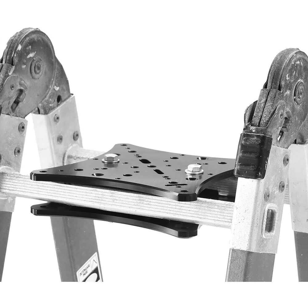 There's no longer a need to mount your rig on a wooden base with this Ladder Mount Base from RigWheels. The base allows you to mount your rig onto a ladder step or table surface without the need for an additional wood rigging base. Included in the base setup are two RigPlates, both 4 and 6" long connecting bolts, and additional mounting hardware. The plates mount on the top and bottom of a folding ladder step using the bolts to accommodate a separately available ball head adapter.