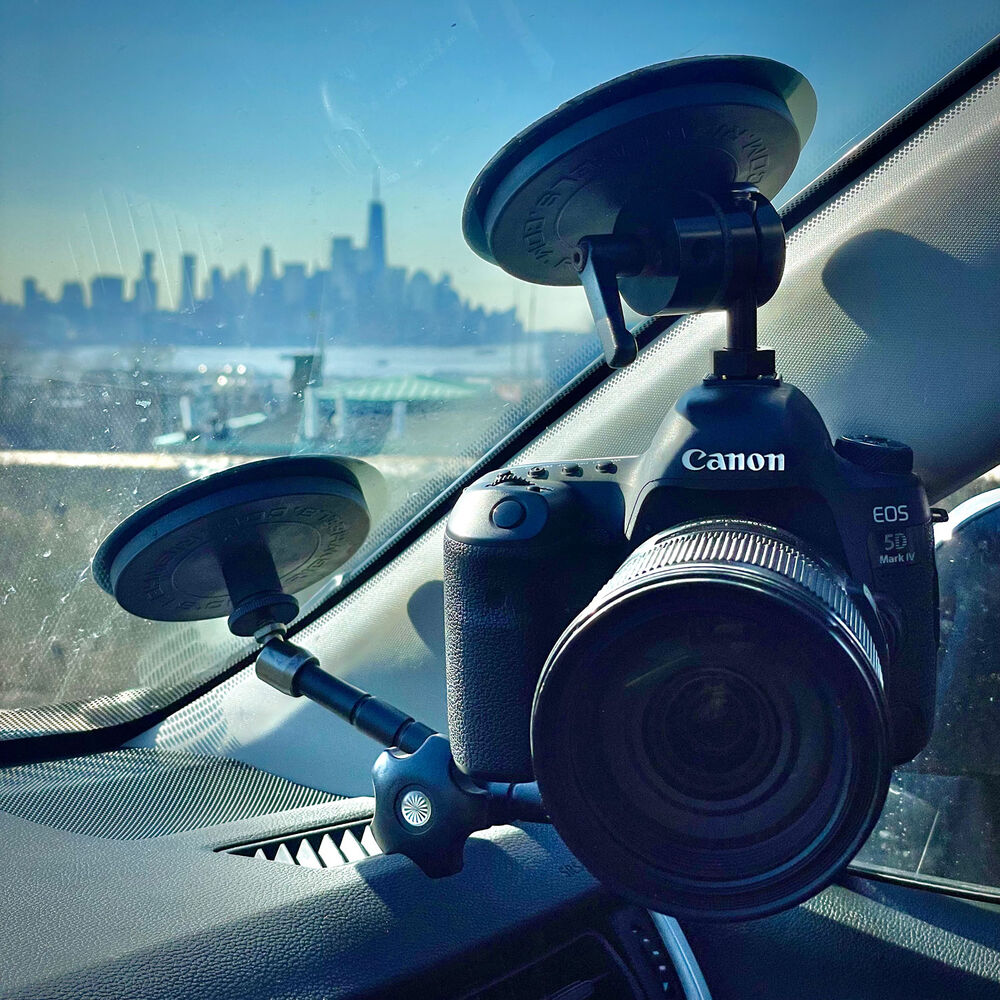The magnet is designed to hold a small-format camera such as a DSLRs or action camera, but you can also use multiple magnets together to support larger rigs. The magnets can also be joined through a glass window or windshield as an additional car mounting option.
