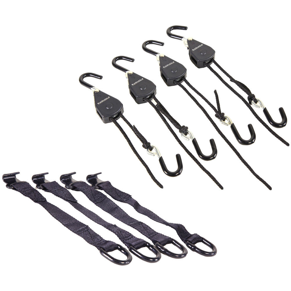 The SK01 Car Mounting Strap and Safety Kit from RigWheels includes 4 CR01 CineRope Mounting Stabilizers and 4 HH01 Hood Hook Car Mounting Straps. This kit is designed to secure and stabilize your camera or other gear when mounted on a car. The hood hook latches onto the edges of body panels and can provide a fixed connection to the car. This Mounting Strap kit can also be used for other purposes such as securing silks, adding ballasts to light-stands, or tying down your gear cart. The attachments points of the stabilizers and straps are rubber coated.