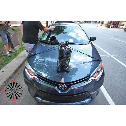 The HH01 Hood Hook Car Mounting Strap from RigWheels is designed to secure and mount cameras or other gear to the exterior of your car and can support up to 200 pounds. The mounting strap hooks on to the edges of the body panels and can provide a fixed connection to the car. The hook and d-ring components are rubber coated.
