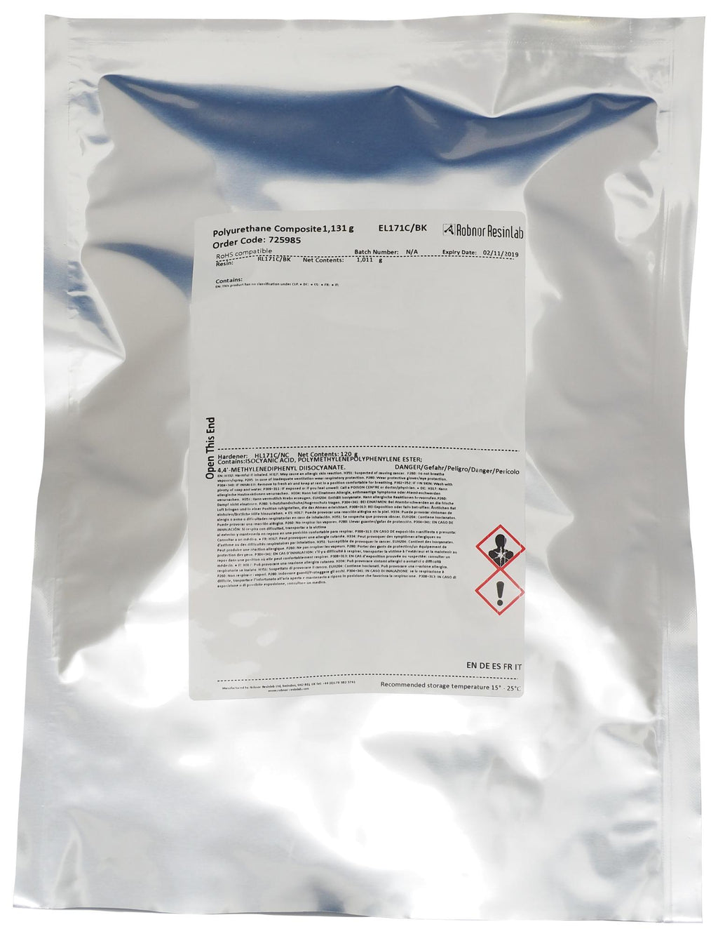 ROBNOR EL171C/1131 Polyurethane Resin, Halogen Free, Flame Retardant, Semi-Rigid, Black, Packet, 1.1kg