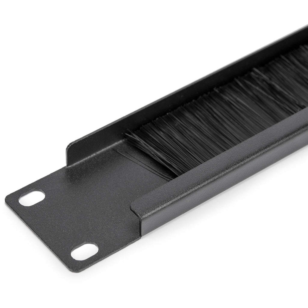Incorporate this Rocstor Rackmount Brush Panel into your rack enclosure or server cabinet to increase cooling effectiveness and protect your equipment. This panel features a nylon brush strip which prevents unwelcome airflow. Cables are still able to pass-through the panel for improved organization. The panel takes up 1 RU of space in a 19" standard rack and is constructed of durable powder-coated steel.