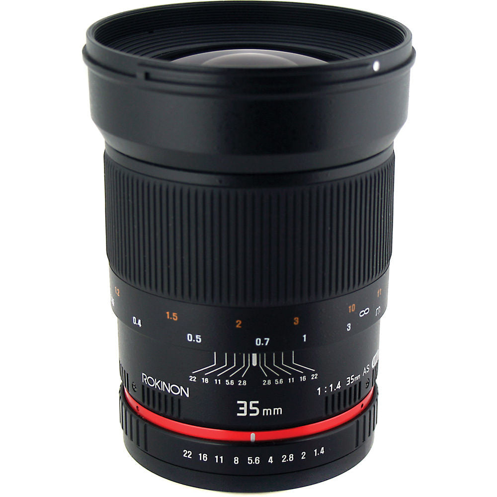 The Canon EF mount Rokinon 35mm f/1.4 AS UMC Lens is a prime standard wide-angle lens designed for both full-frame and APS-C sized sensors; when used with an APS-C sensor the 35mm-equivalent focal length is 56mm. It is well-suited to working in a variety of situations ranging from landscape to portraiture. Its fast f/1.4 maximum aperture is further beneficial to working in low-light conditions and for greater control over selective focus and shallow depth of field effects.