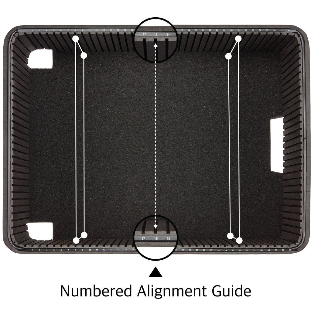 Add protective structure and organization to your Pelican 1560 hard case with this Adjustable Hard Divider Insert from Ruggard. It features grooved dividers of different sizes that you can use to customize the interior of your case with no cutting involved. The grooved sides of each divider allow them to easily slide in and out of place. The dividers are easy to insert or remove, and the case liner is made from flame-retardant PVC board. Each divider is made from a durable polyethylene panel and covered with high-density foam for superior impact and shock resistance. Each divider is 0.5" thick to maximize the space for stored equipment and accessories. The egg crate foam lid liner and thick 1" base layer provide 360? of protection.
