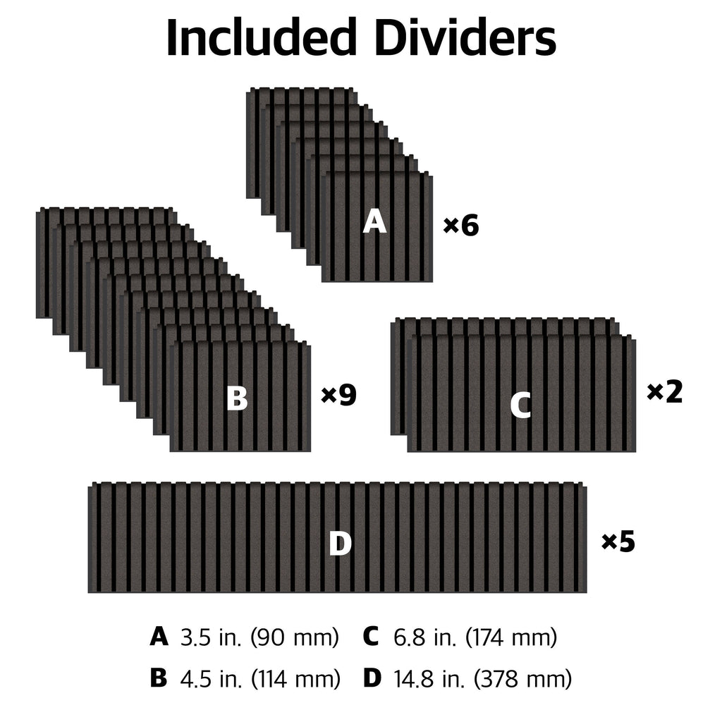 Add protective structure and organization to your Pelican 1615 hard case with this Adjustable Hard Divider Insert from Ruggard. It features grooved dividers of different sizes that you can use to customize the interior of your case with no cutting involved. The grooved sides of each divider allow them to easily slide in and out of place. The dividers are easy to insert or remove, and the case liner is made from flame-retardant PVC board. Each divider is made from a durable polyethylene panel and covered with high-density foam for superior impact and shock resistance. Each divider is 0.5" thick to maximize the space for stored equipment and accessories. The egg crate foam lid liner and thick 1" base layer provide 360? of protection.