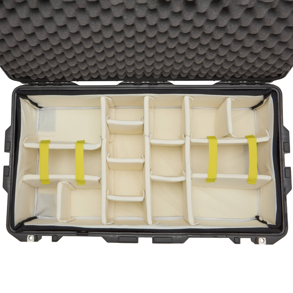 Made from thick foam and wrapped in soft felt fabric, the dividers offer shock and scratch resistance, and they have touch-fastening edges so you can customize their arrangement to accommodate large or small gear. The egg crate foam lid liner provides a solid layer of protection at the top and four touch-fastening elastic straps secure the dividers to keep large equipment from moving around in the case.