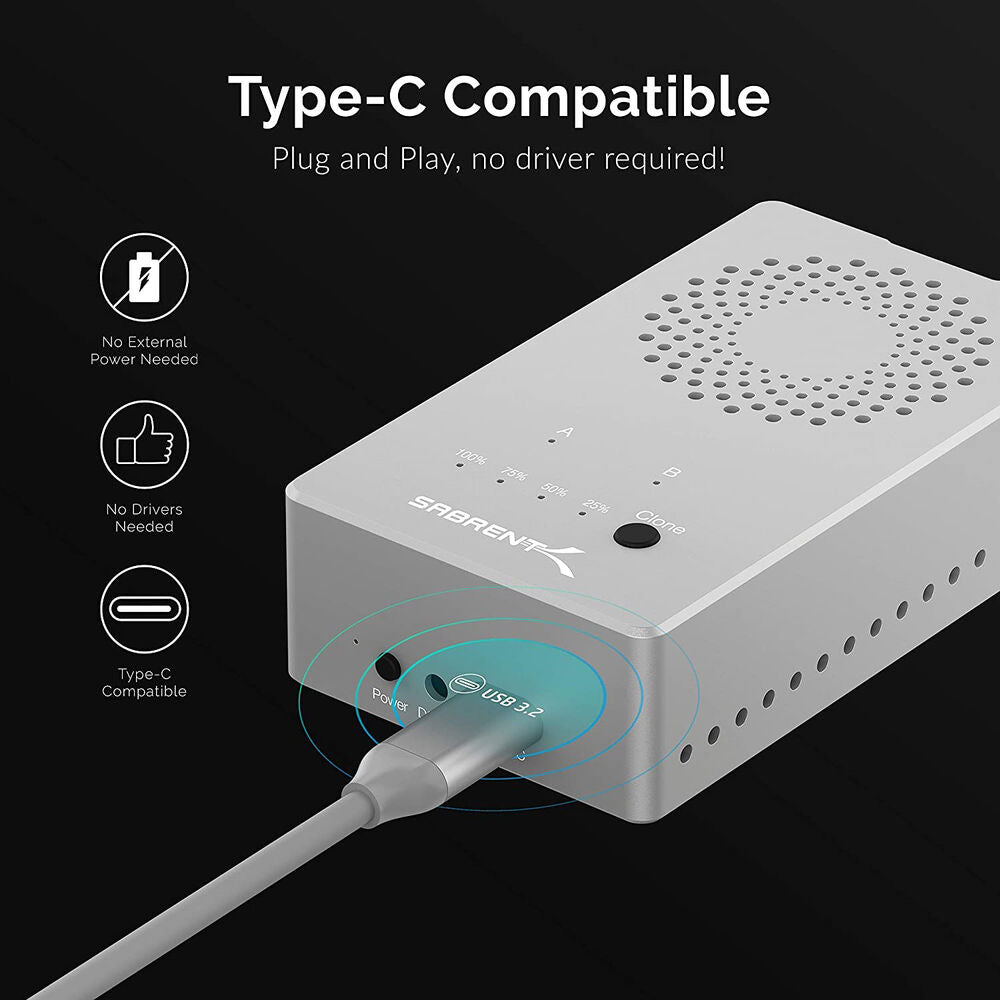 - Sabrent Tool-Free USB Type-C Dual Docking Station for PCIe NVMe M.2 SSDs with Offline Cloning Function