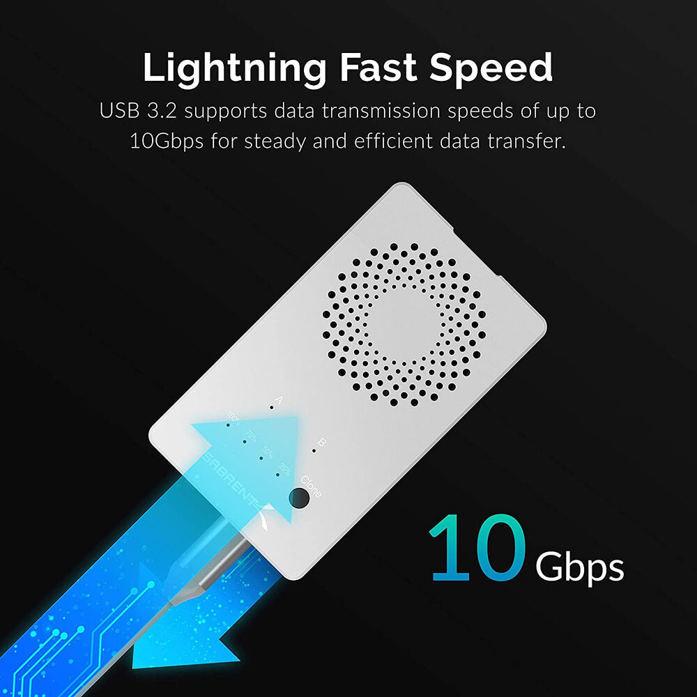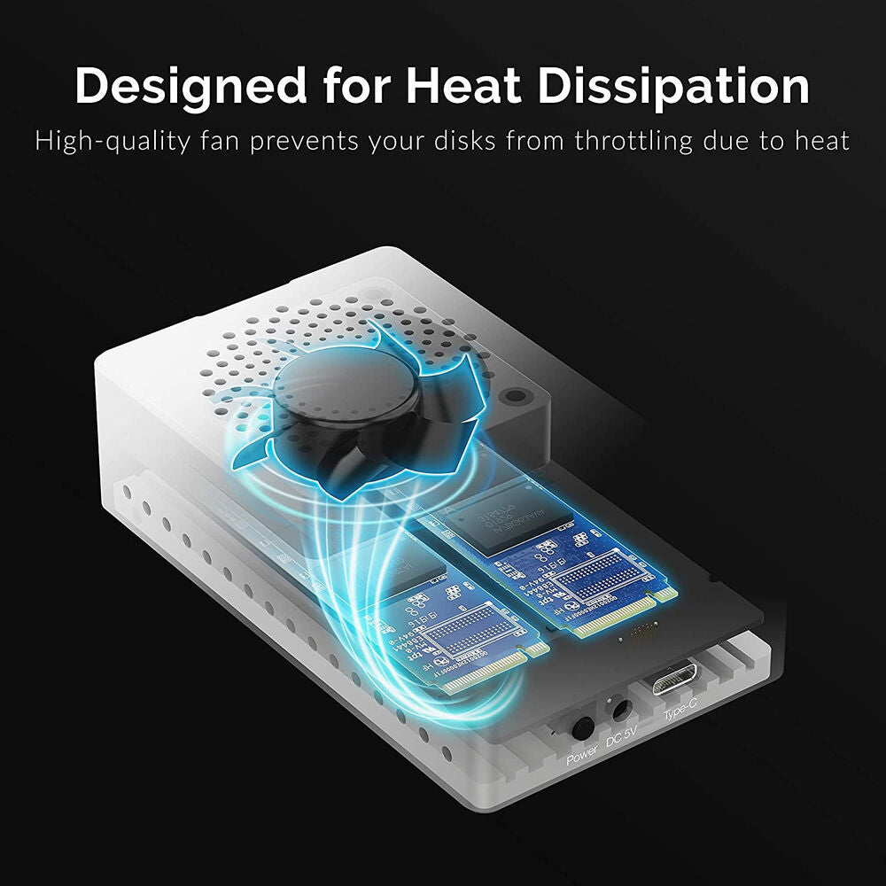 Stored within a sleek aluminum housing, this duplicator supports data transfer speeds up to 10 Gb/s, allowing you to quickly move files from one drive to the other. The tool-less design gives you instant access to the innards of this docking station, revealing two PCIe NVMe M.2 interfaces that supports sizes up to 2280. With the press of a button, you can clone information from one drive to the other while several LED indicators tell you how far along you are in the duplication process. A built-in cooling fan ensures that the temperature of your drives is properly maintained, allowing you to copy, duplicate, and access your information with confidence.