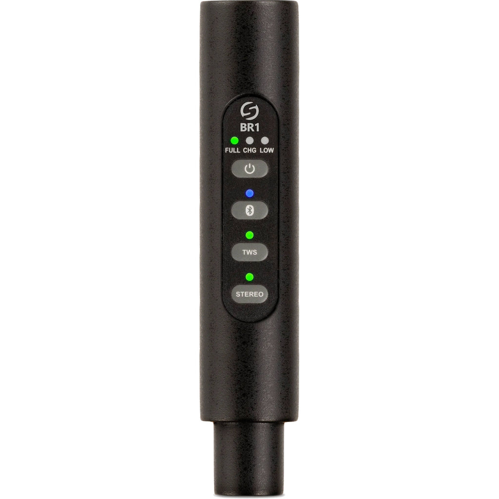 The BR1X provides full stereo audio through a second male XLR output on the back of the unit, allowing a cable to be run to a second speaker or mixer output. The unit features True Wireless Stereo (TWS) technology, allowing two units to be linked to create a left/right pair. The integrated lithium-ion battery provides up to 6 hours of life and a 100? range of operation.
