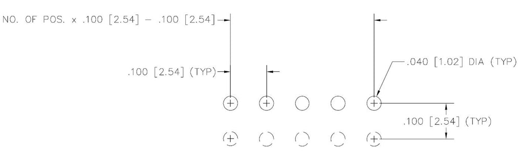 - Pitch spacing is 2.54mm (1 to 50 contacts per row) with straight orientation