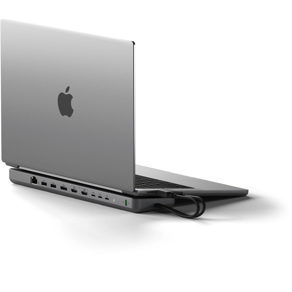 Enhance the capabilities of your laptop setup with the Satechi Dual Docking Stand with NVMe SSD Enclosure. With 75W of power delivery, a Gigabit Ethernet port, multiple USB and display ports, and a slot for an M.2 SATA or NVMe SSD, this dock is perfect for people who need to take work and storage on the go in a small form factor.