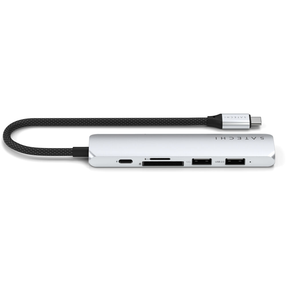 Introduce an extra layer of utility for your devices with the Slim USB-C 6-in-1 Multi-Port Adapter from Satechi. Sporting a sleek, slim, silver aluminum enclosure and a braided USB-C 3.2 Gen 2 cable for host connection, this hub can easily and comfortably be taken anywhere, especially with the small form factor and the physical durability. Featuring one USB-C PD port that boasts an input power of 100W and an output power of 80W, one USB-A 3.2 Gen 2 port with speeds up to 10 Gb/s, one USB-A port with speeds up to 480 Mb/s, one Micro/SD card reader with read speeds of up to 104 MB/s, and one HDMI port that allows for media display on external monitors at resolutions of up to 4K at 60 Hz, your productivity is easily increased with seamless data transfer, reliable device charging, and easy media sharing. Satechi has designed this hub to be fully plug-and-play, so no extra software is needed for full functionality, and with wide device compatibility, you're able to use this hub on a plethora of devices.