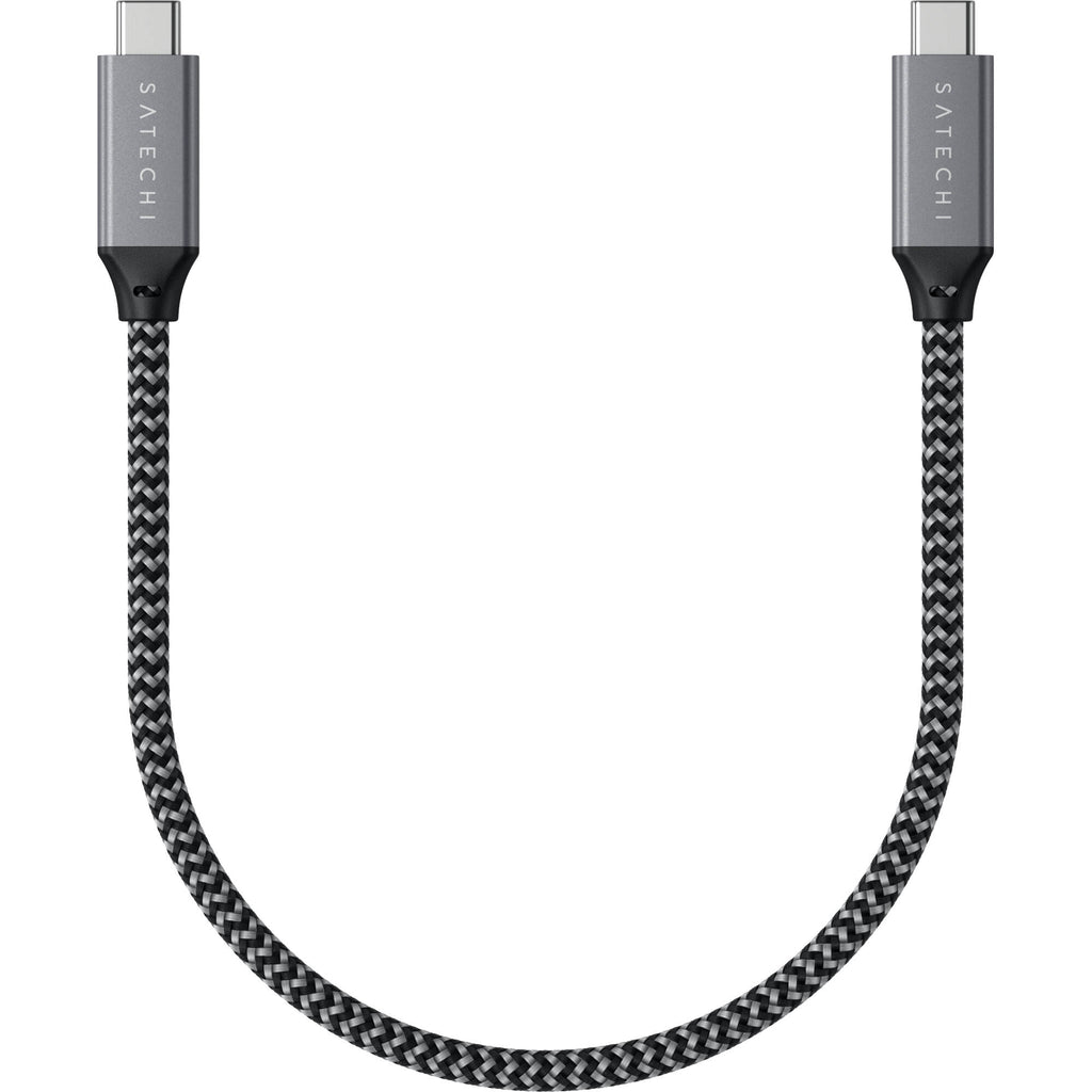 The 10" Satechi USB4 USB-C Cable offers up to 40 Gb/s of transfer speeds and 100W of power delivery. This braided cable supports resolutions up to 8K at 60 Hz or 4K at 120 Hz when connected to a single external display. Backwards compatible with USB 3.2, 3.1, 3.0, and 2.0, this cable can be used to connect older devices as well.