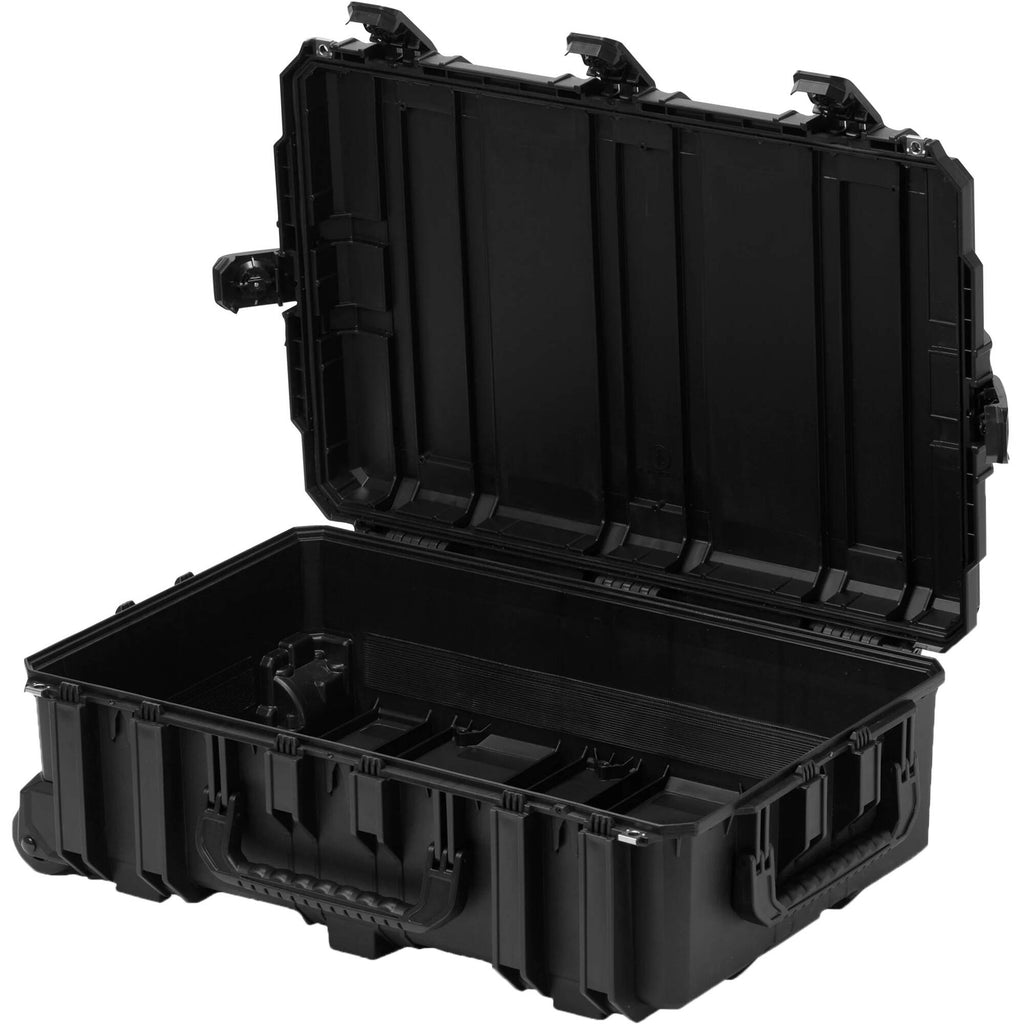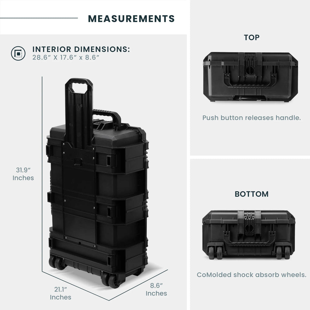 This black 1233 Waterproof Protective Crate from Seahorse will fully protect your sensitive gear from impact and the elements. The case has metal keyed locks and interior foam. Easily transport heavy gear with the built-in wheels and retractable handle. There is also a top handle that can be locked in place and released with a push button. This case is submersible and will stay fully waterproof to a depth of 3.3' for 30 minutes. The twist and lock latches double as air pressure release valves.