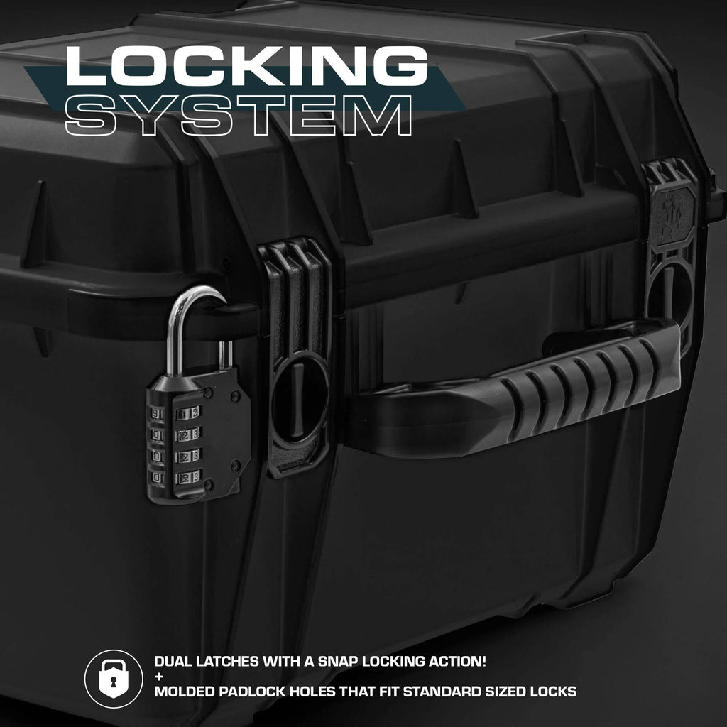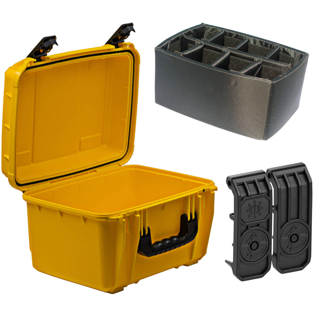 Store, transport, and protect your gear from moisture and dust in this safety yellow 540 Protective Case from Seahorse. The case features padded dividers, lid foampanel mount drawings, an automatic purge system, a latch closure, padlock hasps, an exterior ID window, and a large top handle.