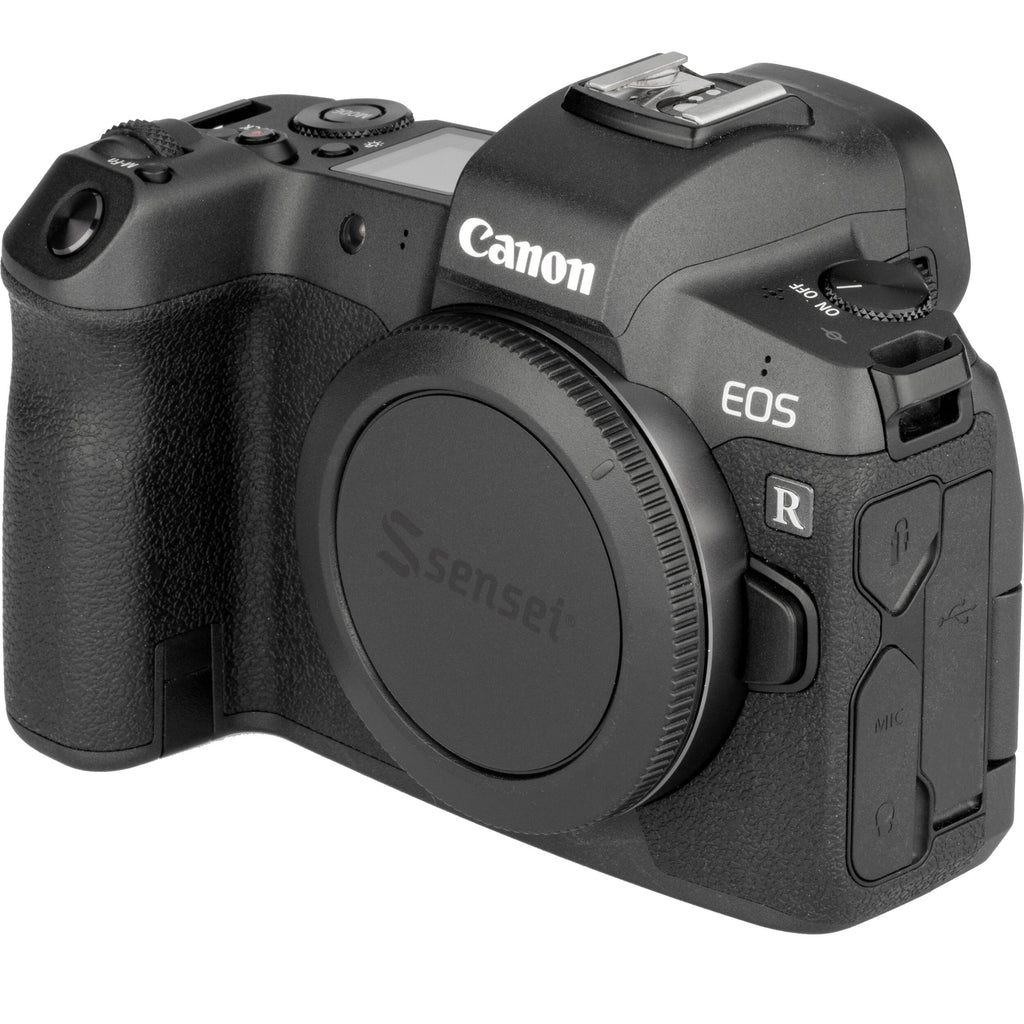The Body Cap for Canon EOS R Cameras from Sensei is a spare or replacement body cap for Canon EOS R camera bodies. This black plastic cap twists onto the lens mount of the camera body to protect the camera's sensor and interior from dust and damage when a lens is not in place. Finger-grip edges on the body cap aid in placement and removal. Having an extra body cap is a good idea in case the original gets lost on vacation or assignment.