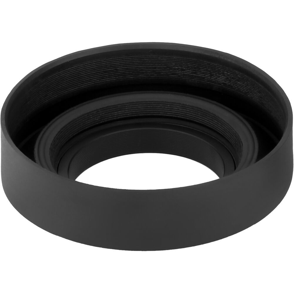 The Lens Hood blocks stray light from entering the lens, which reduces lens flare, and the ridged matte-finish interior minimizes reflections. The hood's rubber is collapsible, and with its 3-stage design you can easily select the right cover for your lens. The collapsible hood also lets you comfortably pack it away inside your camera bag while attached to your lens. The anodized aluminum ring threads the hood easily onto the lens, and the ring's interior threads enable you to screw a filter on or clip a lens cap inside the hood. UPC: 847628007758