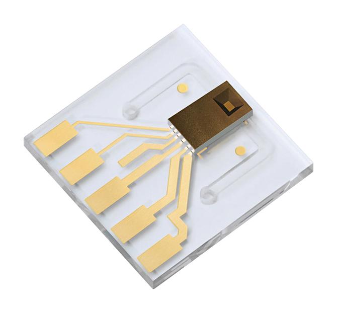 With a tiny footprint of only 10x10mm², Sensirion�s LPG10-1000 liquid flow sensor provides outstanding performance and speed in measuring liquid flow in a planar microfluidic glass substrate with down-mount fluidic ports for a highly compact integration into any fluidic manifold system. It is ideal for high-volume applications with strict space limitations. 2 core technologies are combined at this point: microfluidics chips and digital microsensor chips. This unique approach enables measurement of liquid flow inside a cost-efficient planar glass substrate. Digital microsensor chip provides full signal processing functionality for a fully calibrated, temperature compensated and linearized digital output. It is a smart sensor solution offering flow rates from low microliter per minute range up to 1ml/min. Glass as only wetted material ensures optimum compatibility with biological and pharmaceutical processes. Used in biomedical, point-of-care diagnostics and surgical instruments.